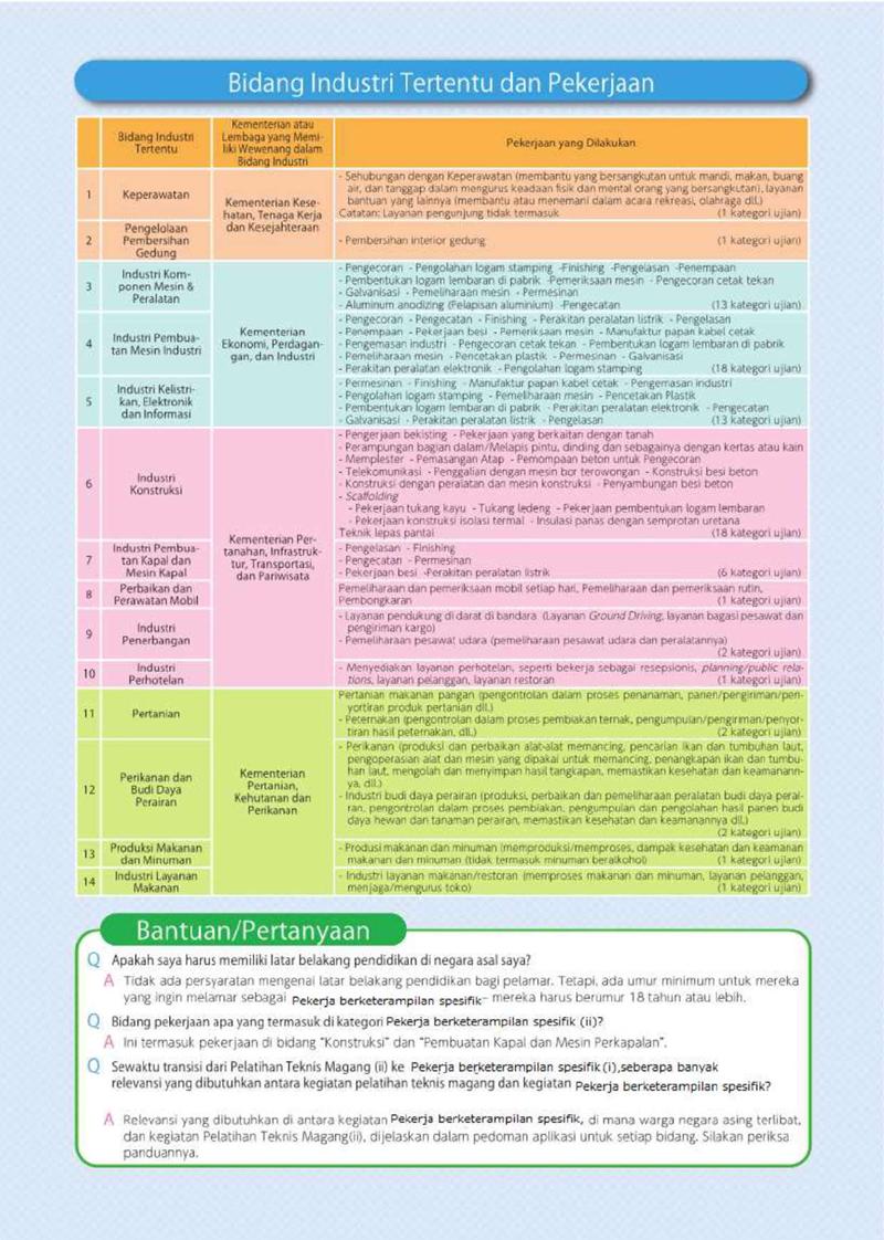 - Pekerja berketerampilan spesifik(i) dan Pekerja berketerampilan spesifik (ii).